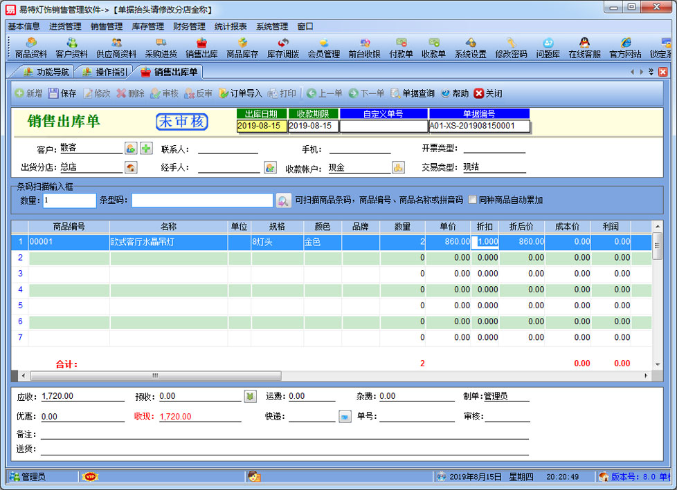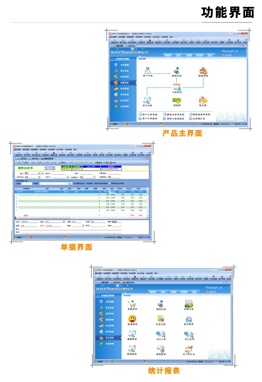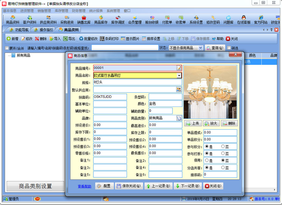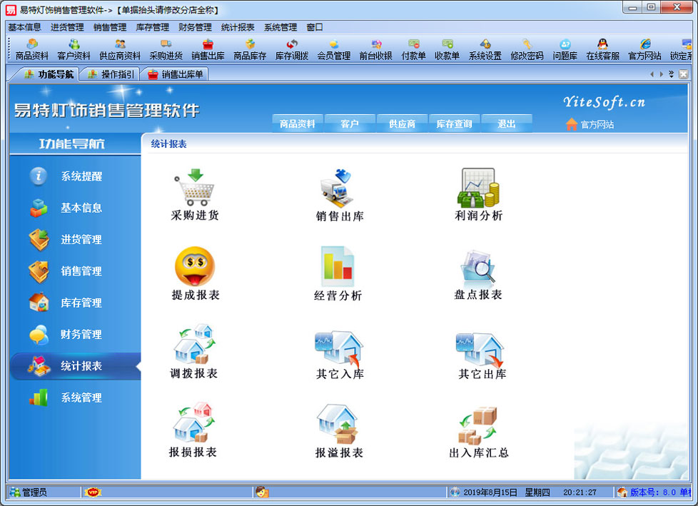 | 易特?zé)麸椾N售管理軟件是一款專業(yè)的針對燈飾而設(shè)計的銷售管理軟件,完美解決燈飾行業(yè)從預(yù)訂,到銷售送貨,安裝的過程。其中包含商品銷售管理系統(tǒng) ,庫存管理系統(tǒng)(倉庫管理系統(tǒng)),財務(wù)和報表系統(tǒng)等子模塊。軟件界面設(shè)計簡潔,美觀,其人性化的軟件流程,使普通用戶不需培訓(xùn)也能很快掌握軟件操作使用方法,上手極易。強大報表與集成查詢功能是本軟件的最大特色,所有功能在用戶需要的使用地方自然體現(xiàn),不用打開多個窗口重復(fù)查詢。易特進銷存軟件廣泛適用于企業(yè),商貿(mào)公司,個體門店等用于商業(yè)銷售管理, 庫存管理,財務(wù)管理等,客戶管理,員工管理等場合,是您企業(yè)進行信息化管理的強大工具。 基礎(chǔ)數(shù)據(jù):商品信息,供應(yīng)商,客戶,商品分類,倉庫,銀行等基本信息的設(shè)置。 入庫管理:進行貨品采購入庫,采購?fù)素,進貨單據(jù)和退貨單據(jù)查詢,供應(yīng)商往來帳務(wù),供應(yīng)商付款。 出庫管理:銷售出貨,客戶退貨,銷售單據(jù)和客戶退貨查詢,客戶往來帳務(wù),客戶付款。 庫存管理:包括庫存之間貨品調(diào)拔,庫存報損、報溢,庫存盤點功能。 拆分組裝:整進散出,或是整出散進等可以自由的拆分組合產(chǎn)品。 統(tǒng)計報表:完整的統(tǒng)計查詢功能,每張單據(jù)每次業(yè)務(wù)金額都可以清楚的反映。 權(quán)限管理:可添加刪除系統(tǒng)操作員帳號,強大的權(quán)限控制,可以設(shè)置某用戶對某窗口某個按鈕的權(quán)限。 打印設(shè)計:可對系統(tǒng)內(nèi)每個單據(jù)進行打印的格式設(shè)計,可以導(dǎo)出,導(dǎo)入,每個操作員可設(shè)計自己的打印格式。 界面設(shè)計:系統(tǒng)窗口界面名稱可以自定義設(shè)計,表格的顯示順序,寬度,是否顯示等,每個操作員可以設(shè)計自己的界面。 系統(tǒng)設(shè)置:可以靈活設(shè)置系統(tǒng)小數(shù)位數(shù),可選0-6位,讓帳務(wù)更精確,可對以往數(shù)據(jù)進行選擇性的清除,以便系統(tǒng)初始化。 數(shù)據(jù)備份:可隨時對系統(tǒng)數(shù)據(jù)庫進行安全備份,以防數(shù)據(jù)丟失。 3、 屏幕分辨率800X600以 |