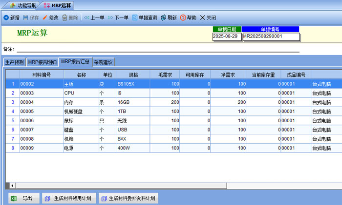 標(biāo)準(zhǔn)版主要功能為采購訂單,采購入庫,生產(chǎn)計(jì)劃,MRP運(yùn)算,材料領(lǐng)用,生產(chǎn)入庫,銷售出庫,應(yīng)收應(yīng)付賬款管理