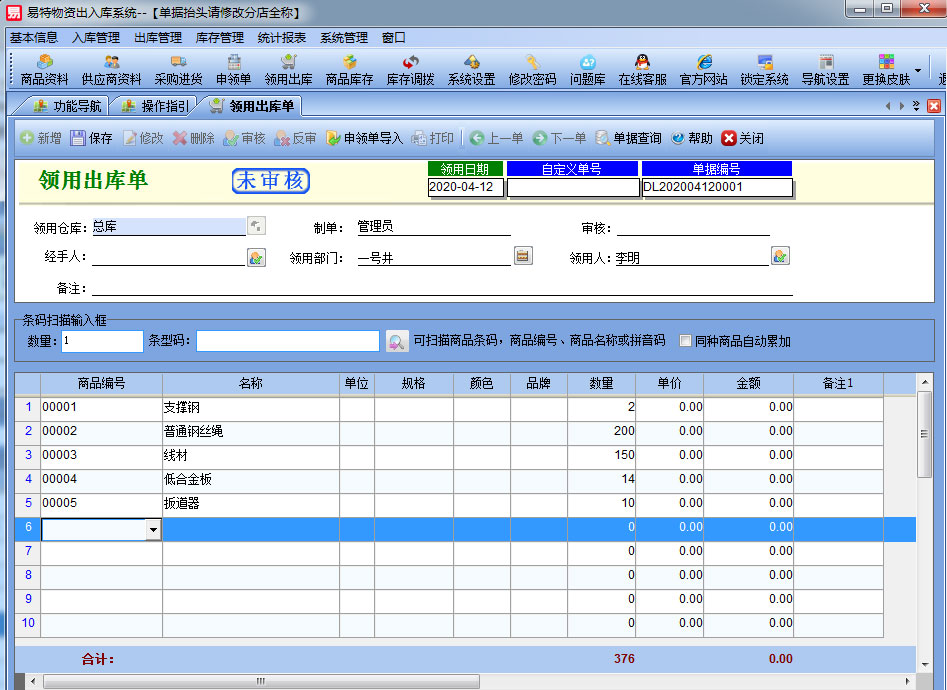 易特物資出入庫管理系統(tǒng)能從采購入庫,耗材領(lǐng)用出庫,作業(yè)工具的領(lǐng)用,歸還,移交等一系列針對礦業(yè)特點而設(shè)計的物資管理軟件。軟件簡單易操作,能