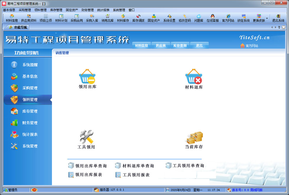 工程中途和竣工時(shí)收款這樣的一個(gè)過程。對于工程項(xiàng)目中的材料管理,易特推出工程項(xiàng)目管理系統(tǒng),從項(xiàng)目的立項(xiàng),材料需用計(jì)劃單,采購合同,采購入庫