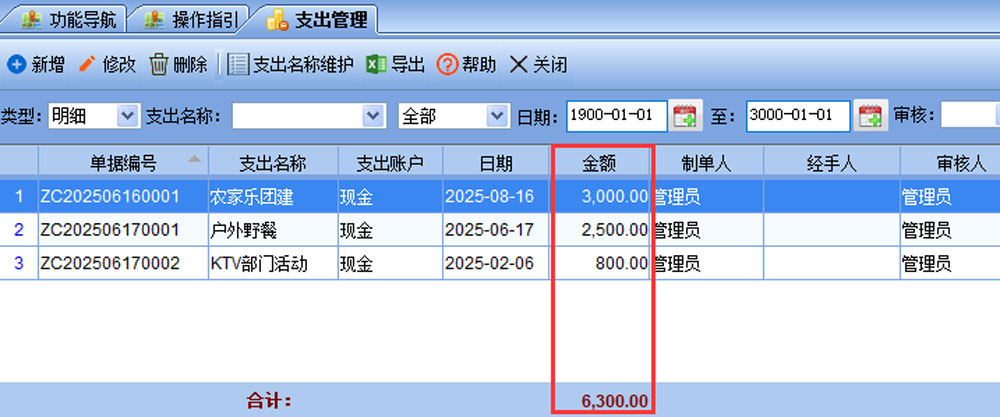 【月度費用】,統(tǒng)計每個月的支出單據(jù),并合計每月的支出費用金額。