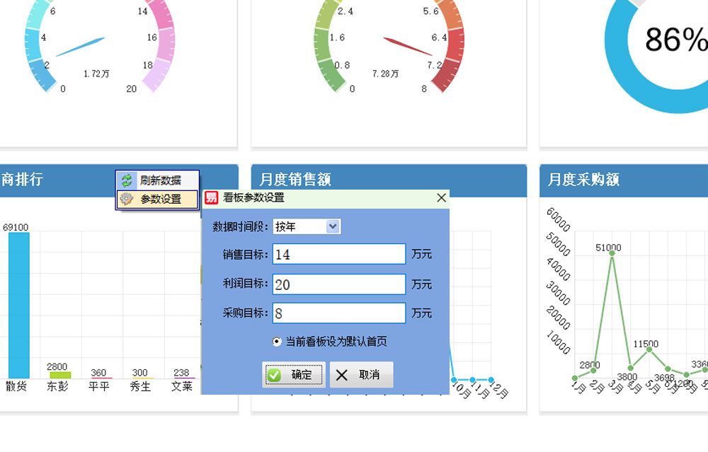 【采購目標】,是指在【參數(shù)設置】里面設置的采購目標。里面的【指針】是指在設置的數(shù)據(jù)時間段內,達成的采購總額。
