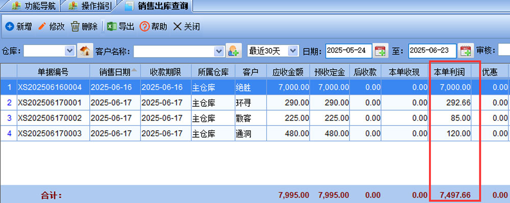 【毛利總額】,是指在【參數(shù)設置】的時間范圍內,對應的銷售出庫單中,單據(jù)利潤的總和。