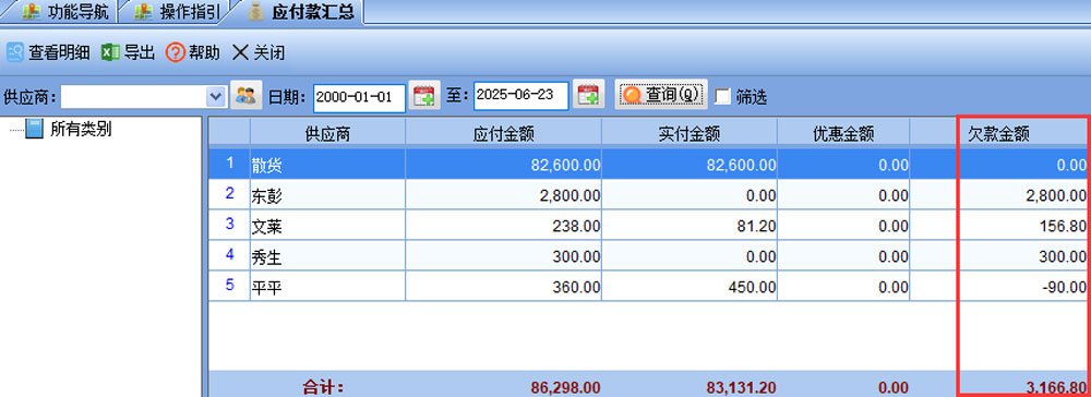 【應付款】,是指在全部的時間范圍內,查詢【所有供應商】的總欠款金額。