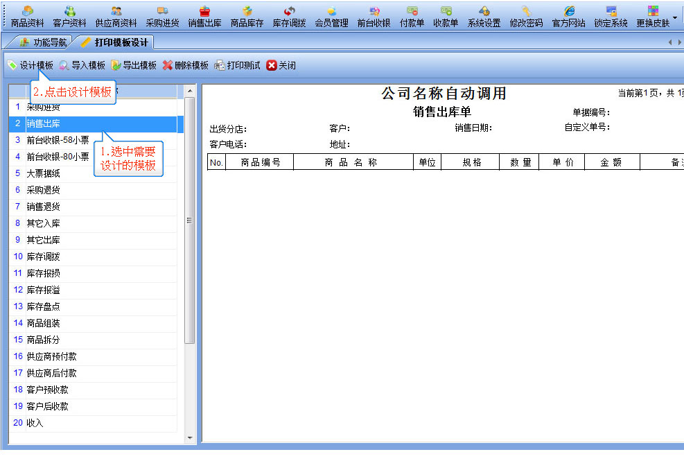 打開打印模板設(shè)置的總窗口,【系統(tǒng)管理】--【打印模板設(shè)計】如圖1,點(diǎn)擊一個單據(jù)即打開圖2所示的報表設(shè)計窗口