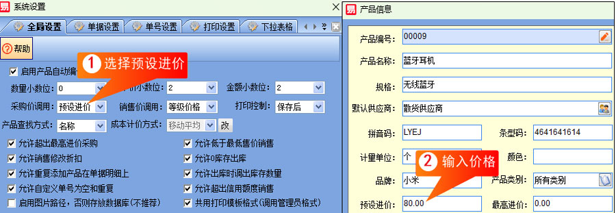 采購價(jià)自動(dòng)調(diào)用包含有兩種方式,一個(gè)是預(yù)設(shè)進(jìn)價(jià),另一個(gè)是最后進(jìn)價(jià)。