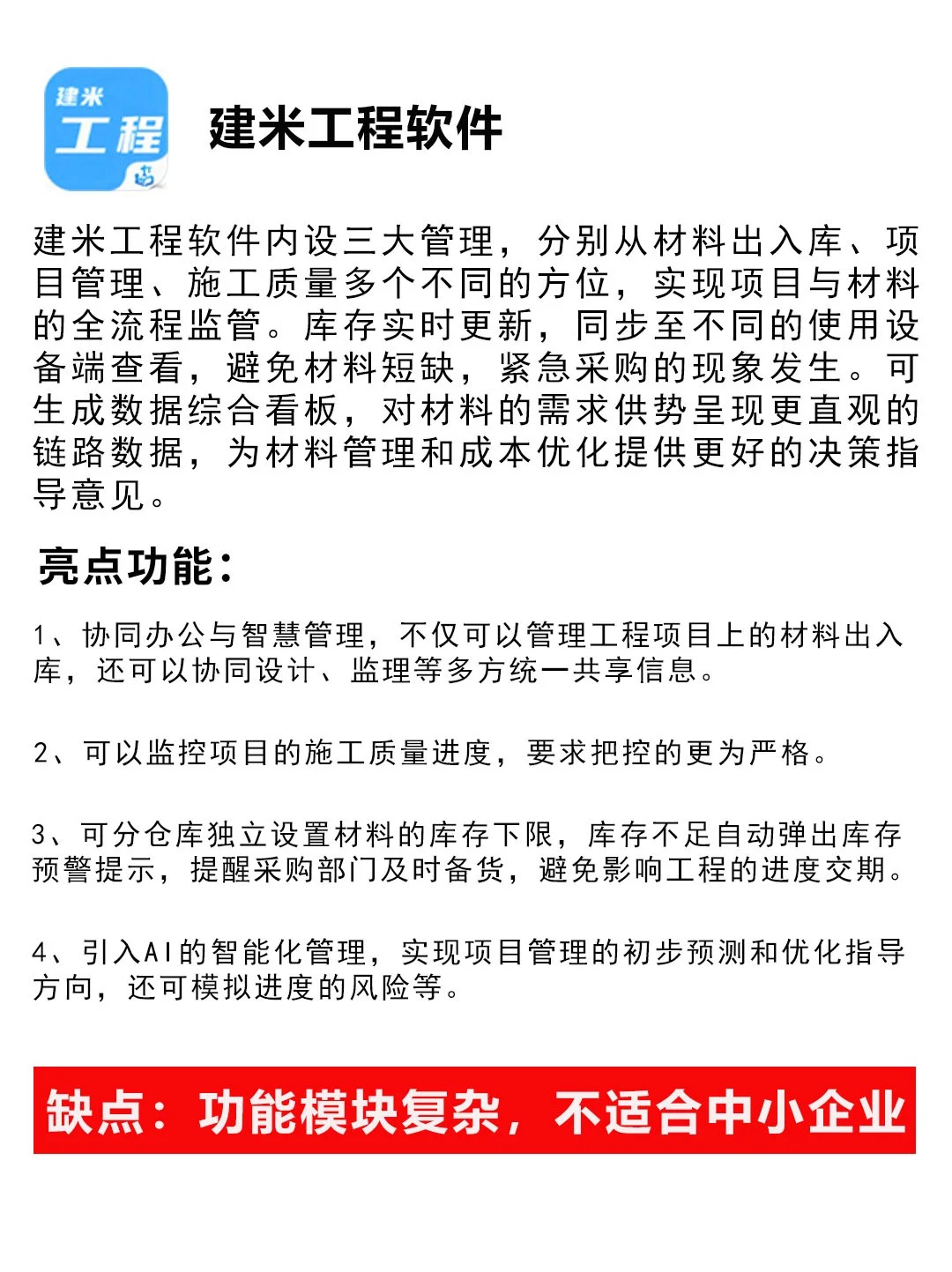 如果企業(yè)需要加強合同全流程管理和固定資產(chǎn)和設(shè)備租賃這方面的話,易特工程項目系統(tǒng)相對更適合。需要突出施工質(zhì)量檢查、驗收標準管理這方面的話,可以選建米工程軟件。