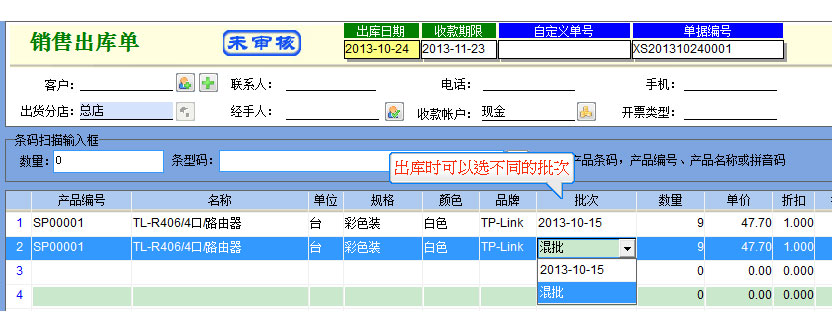 出庫可以根據(jù)入庫的批次進(jìn)行選擇。
