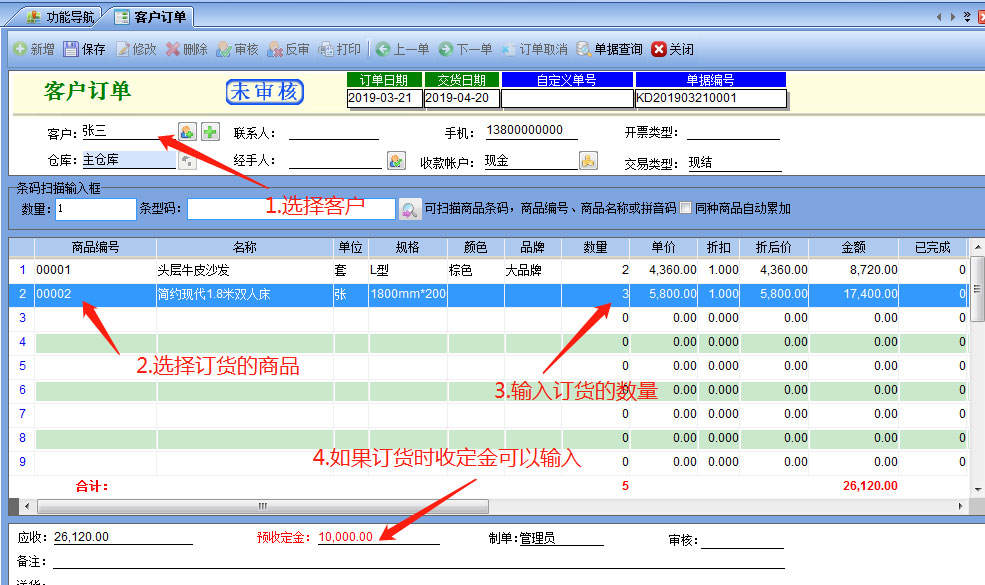 第一步,在【銷售管理】模塊中點擊【客戶訂單】打開如下圖