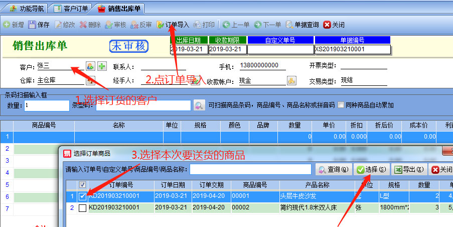客戶,然后點擊【訂單導(dǎo)入】,選擇要出貨的商品。