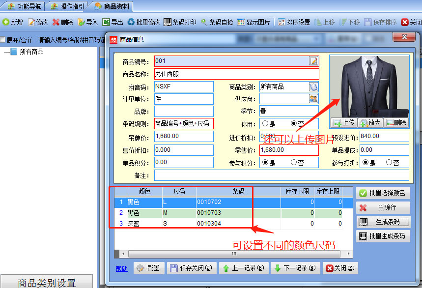 服裝商品因其顏色,尺碼的特殊性質(zhì),一般的普通進銷存記賬軟件比較難滿足服裝店的需求,需要專業(yè)的服裝軟件來解決顏色尺碼的問題。