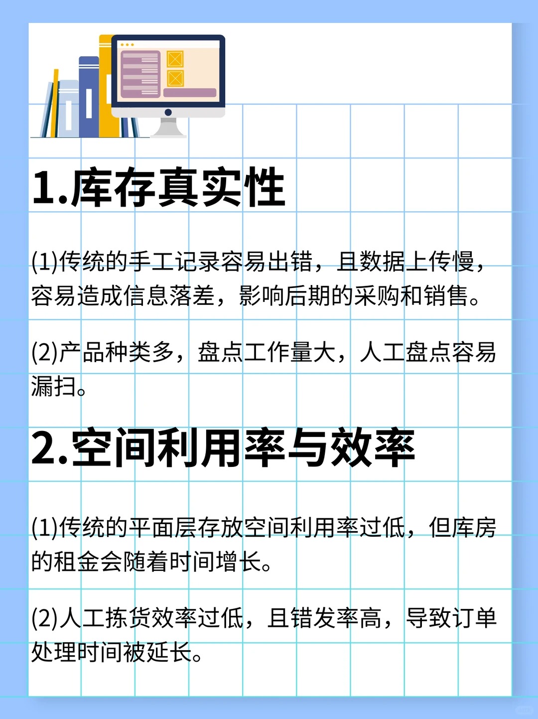 (1)傳統(tǒng)的手工記錄容易出錯(cuò),且數(shù)據(jù)上傳慢,容易造成信息落差,影響后期的采購(gòu)和銷售。