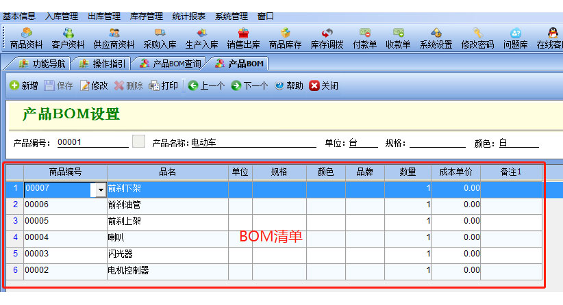 基本信息:產(chǎn)品信息,供應(yīng)商,客戶,產(chǎn)品分類,產(chǎn)品BOM,倉庫設(shè)置,銀行等基本信息的設(shè)置;