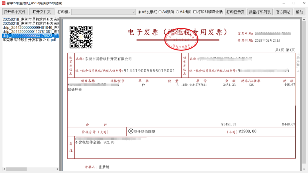 易特PDF電子發(fā)票批量打印工具,1秒免費搞定百張發(fā)票