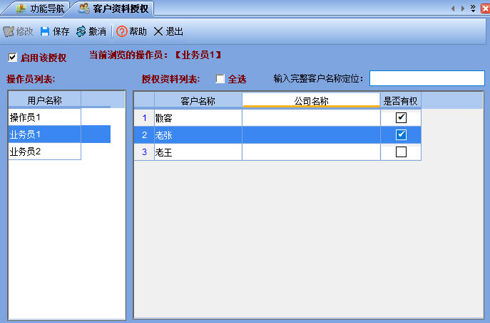 同一個業(yè)務(wù)員只可以查看到自己名下客戶的單據(jù);