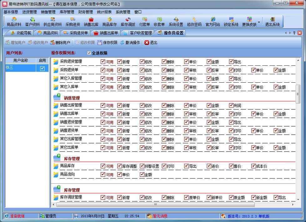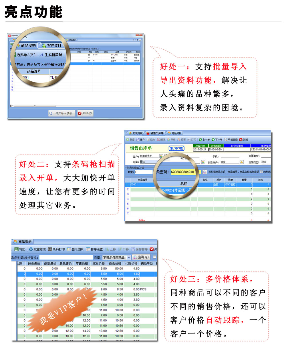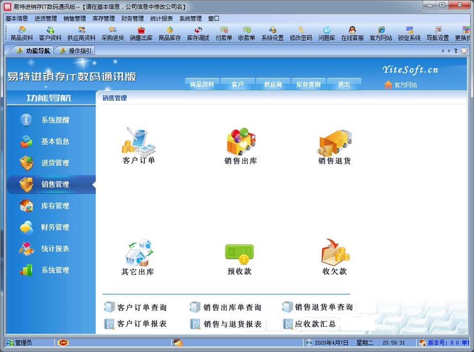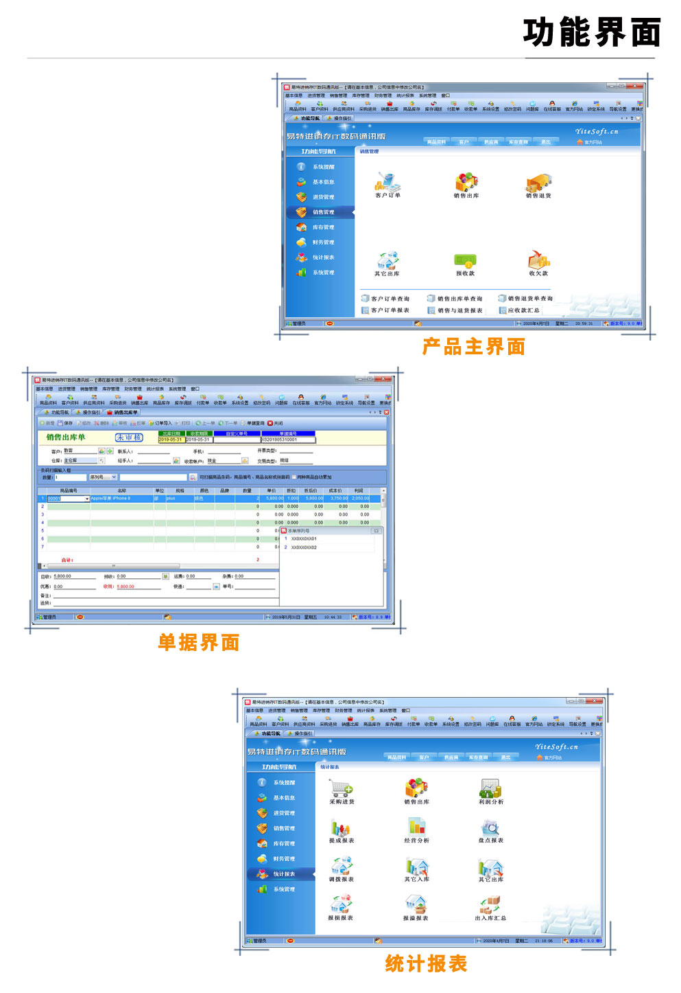 | 易特進(jìn)銷存IT數(shù)碼通訊版是一款專業(yè)的進(jìn)銷存存軟件,針對(duì)有序列號(hào)/串號(hào)管理需求的商品而設(shè)計(jì)開(kāi)發(fā),其中包含商品銷售管理系統(tǒng) ,庫(kù)存管理系統(tǒng)(倉(cāng)庫(kù)管理系統(tǒng)),財(cái)務(wù)和報(bào)表系統(tǒng)等子模塊。軟件界面設(shè)計(jì)簡(jiǎn)潔,美觀,其人性化的軟件流程,使普通用戶不需培訓(xùn)也能很快掌握軟件操作使用方法,上手極易。強(qiáng)大報(bào)表與集成查詢功能是本軟件的最大特色,所有功能在用戶需要的使用地方自然體現(xiàn),不用打開(kāi)多個(gè)窗口重復(fù)查詢。易特進(jìn)銷存軟件廣泛適用于企業(yè),商貿(mào)公司,個(gè)體門店等用于商業(yè)銷售管理, 庫(kù)存管理,財(cái)務(wù)管理等,客戶管理,員工管理等場(chǎng)合,是您企業(yè)進(jìn)行信息化管理的強(qiáng)大工具。 基礎(chǔ)數(shù)據(jù):商品信息,供應(yīng)商,客戶,商品分類,倉(cāng)庫(kù),銀行等基本信息的設(shè)置。 入庫(kù)管理:進(jìn)行貨品采購(gòu)入庫(kù),采購(gòu)?fù)素,進(jìn)貨單據(jù)和退貨單據(jù)查詢,供應(yīng)商往來(lái)帳務(wù),供應(yīng)商付款。 出庫(kù)管理:銷售出貨,客戶退貨,銷售單據(jù)和客戶退貨查詢,客戶往來(lái)帳務(wù),客戶付款。 庫(kù)存管理:包括庫(kù)存之間貨品調(diào)拔,庫(kù)存報(bào)損、報(bào)溢,庫(kù)存盤點(diǎn)功能。 拆分組裝:整進(jìn)散出,或是整出散進(jìn)等可以自由的拆分組合產(chǎn)品。 統(tǒng)計(jì)報(bào)表:完整的統(tǒng)計(jì)查詢功能,每張單據(jù)每次業(yè)務(wù)金額都可以清楚的反映。 權(quán)限管理:可添加刪除系統(tǒng)操作員帳號(hào),強(qiáng)大的權(quán)限控制,可以設(shè)置某用戶對(duì)某窗口某個(gè)按鈕的權(quán)限。 打印設(shè)計(jì):可對(duì)系統(tǒng)內(nèi)每個(gè)單據(jù)進(jìn)行打印的格式設(shè)計(jì),可以導(dǎo)出,導(dǎo)入,每個(gè)操作員可設(shè)計(jì)自己的打印格式。 界面設(shè)計(jì):系統(tǒng)窗口界面名稱可以自定義設(shè)計(jì),表格的顯示順序,寬度,是否顯示等,每個(gè)操作員可以設(shè)計(jì)自己的界面。 系統(tǒng)設(shè)置:可以靈活設(shè)置系統(tǒng)小數(shù)位數(shù),可選0-6位,讓帳務(wù)更精確,可對(duì)以往數(shù)據(jù)進(jìn)行選擇性的清除,以便系統(tǒng)初始化。 數(shù)據(jù)備份:可隨時(shí)對(duì)系統(tǒng)數(shù)據(jù)庫(kù)進(jìn)行安全備份,以防數(shù)據(jù)丟失。 3、 屏幕分辨率800X600以 |