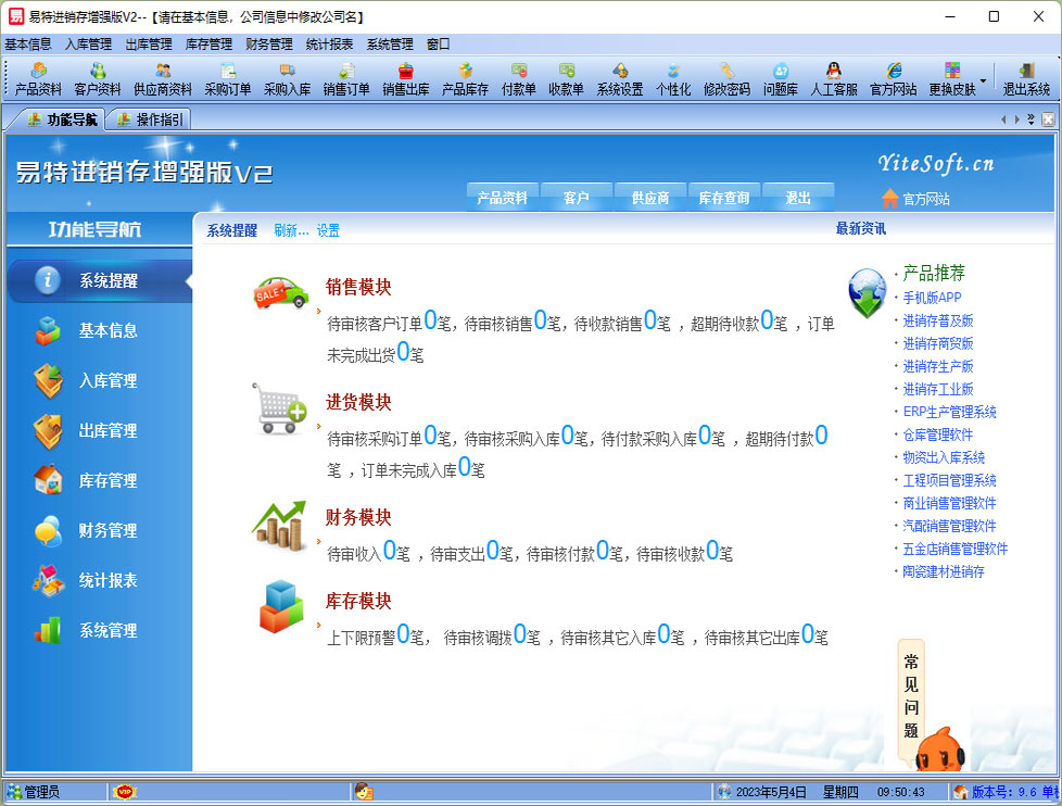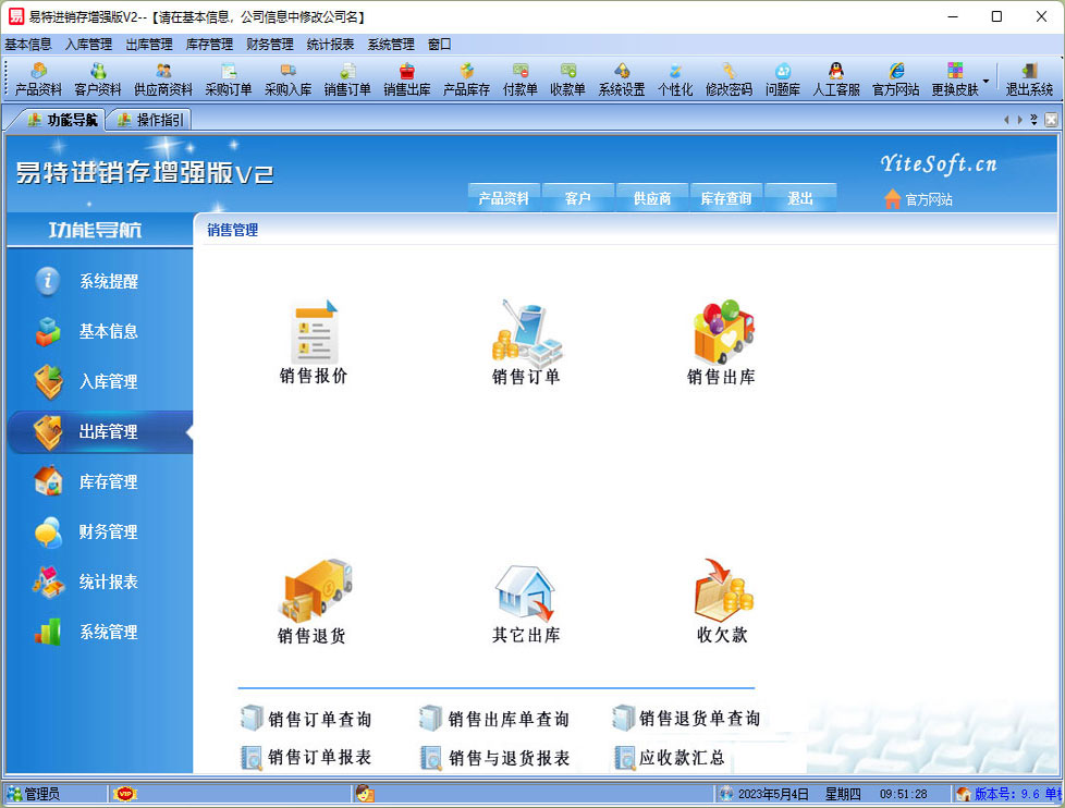 易特進(jìn)銷存增強(qiáng)版是一款專業(yè)的多數(shù)量計(jì)量單位的進(jìn)銷存軟件,針對(duì)有多計(jì)量數(shù)量管理需求的行業(yè)而設(shè)計(jì)開發(fā),其中包含商品銷售管理系統(tǒng) ,庫存管理系統(tǒng)(倉庫管理系統(tǒng)),財(cái)務(wù)和報(bào)表系統(tǒng)等子模塊。軟件界面設(shè)計(jì)簡潔,美觀,其人性化的軟件流程,使普通用戶不需培訓(xùn)也能很快掌握軟件操作使用方法,上手極易。強(qiáng)大報(bào)表與集成查詢功能是本軟件的最大特色,所有功能在用戶需要的使用地方自然體現(xiàn),不用打開多個(gè)窗口重復(fù)查詢。易特進(jìn)銷存軟件廣泛適用于企業(yè),商貿(mào)公司,個(gè)體門店等用于商業(yè)銷售管理, 庫存管理,財(cái)務(wù)管理等,客戶管理,員工管理等場合,是您企業(yè)進(jìn)行信息化管理的強(qiáng)大工具。 基礎(chǔ)數(shù)據(jù):產(chǎn)品信息,供應(yīng)商,客戶,商品分類,倉庫,銀行,計(jì)量單位等基本信息的設(shè)置。 入庫管理:采購訂單,進(jìn)行產(chǎn)品采購入庫,采購?fù)素,進(jìn)貨單據(jù)和退貨單據(jù)查詢,供應(yīng)商往來帳務(wù),供應(yīng)商付款。 出庫管理:銷售訂單,銷售出貨,客戶退貨,銷售單據(jù)和客戶退貨查詢,客戶往來帳務(wù),客戶付款。 庫存管理:包括庫存之間貨品調(diào)拔,庫存報(bào)損、報(bào)溢,庫存盤點(diǎn)功能。 統(tǒng)計(jì)報(bào)表:完整的統(tǒng)計(jì)查詢功能,每張單據(jù)每次業(yè)務(wù)金額都可以清楚的反映。 權(quán)限管理:可添加刪除系統(tǒng)操作員帳號(hào),強(qiáng)大的權(quán)限控制,可以設(shè)置某用戶對(duì)某窗口某個(gè)按鈕的權(quán)限。 打印設(shè)計(jì):可對(duì)系統(tǒng)內(nèi)每個(gè)單據(jù)進(jìn)行打印的格式設(shè)計(jì),可以導(dǎo)出,導(dǎo)入,每個(gè)操作員可設(shè)計(jì)自己的打印格式。 界面設(shè)計(jì):系統(tǒng)窗口界面名稱可以自定義設(shè)計(jì),表格的顯示順序,寬度,是否顯示等,每個(gè)操作員可以設(shè)計(jì)自己的界面。 系統(tǒng)設(shè)置:可以靈活設(shè)置系統(tǒng)小數(shù)位數(shù),可選0-6位,讓帳務(wù)更精確,可對(duì)以往數(shù)據(jù)進(jìn)行選擇性的清除,以便系統(tǒng)初始化。 數(shù)據(jù)備份:可隨時(shí)對(duì)系統(tǒng)數(shù)據(jù)庫進(jìn)行安全備份,以防數(shù)據(jù)丟失。 |