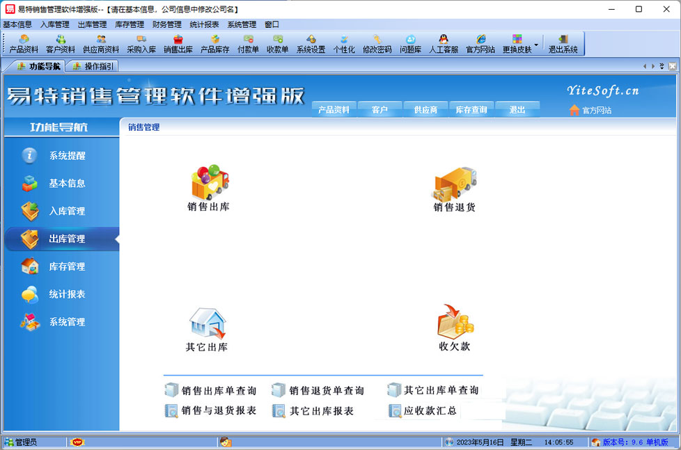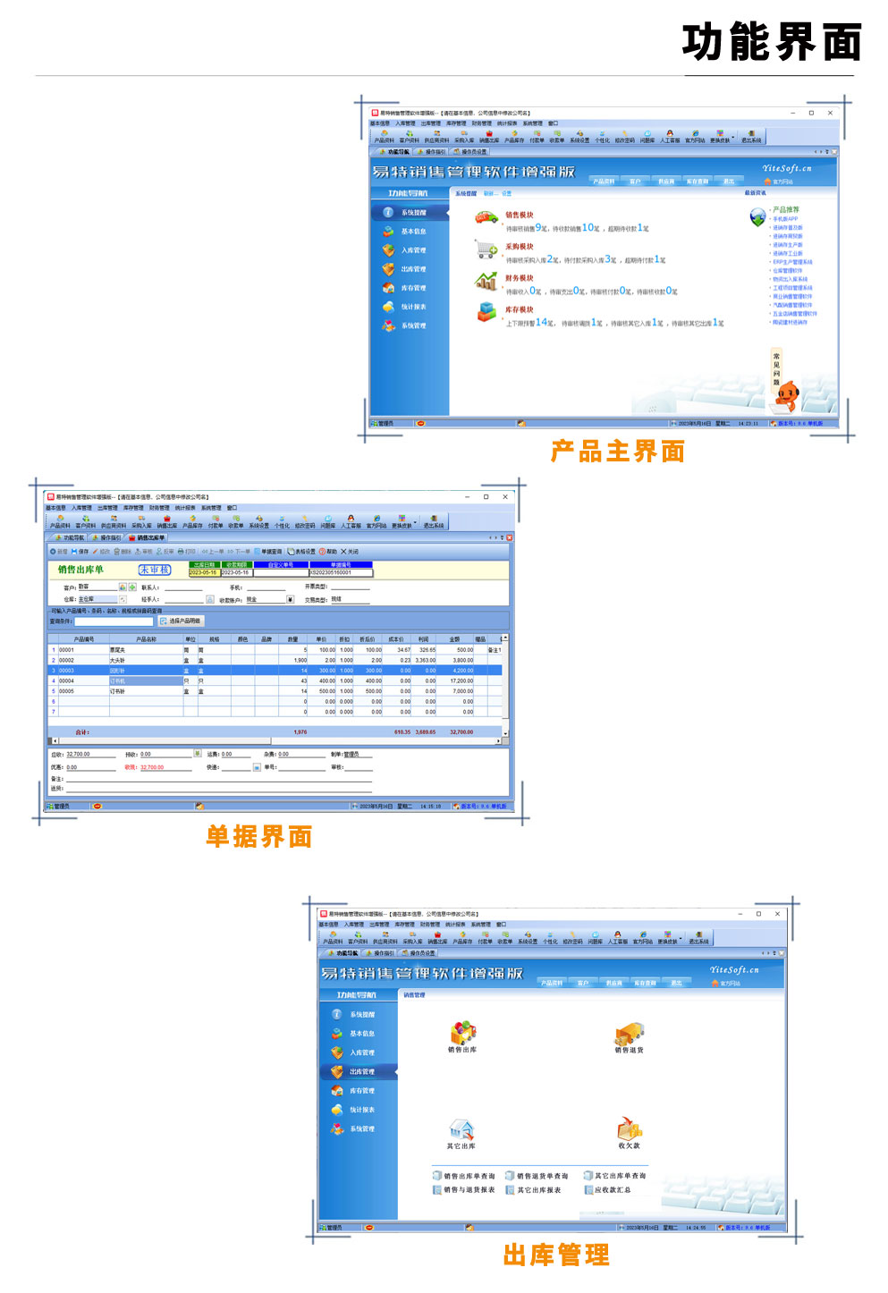 易特銷(xiāo)售管理軟件是一款專(zhuān)業(yè)的銷(xiāo)售型進(jìn)銷(xiāo)存管理軟件,其中包含產(chǎn)品銷(xiāo)售管理系統(tǒng) ,庫(kù)存管理系統(tǒng),財(cái)務(wù)和報(bào)表系統(tǒng)等子模塊。軟件界面設(shè)計(jì)簡(jiǎn)潔,美觀,其人性化的軟件流程,使普通用戶不需培訓(xùn)也能很快掌握軟件操作使用方法,上手極易。強(qiáng)大報(bào)表與集成查詢功能是本軟件的最大特色,所有功能在用戶需要的使用地方自然體現(xiàn),不用打開(kāi)多個(gè)窗口重復(fù)查詢。易特進(jìn)銷(xiāo)存軟件廣泛適用于企業(yè),商貿(mào)公司,個(gè)體門(mén)店等用于商業(yè)銷(xiāo)售管理, 庫(kù)存管理,財(cái)務(wù)管理等,客戶管理,員工管理等場(chǎng)合,是您企業(yè)進(jìn)行信息化管理的強(qiáng)大工具。 基礎(chǔ)數(shù)據(jù):產(chǎn)品信息,供應(yīng)商,客戶,產(chǎn)品分類(lèi),倉(cāng)庫(kù),銀行等基本信息的設(shè)置。 入庫(kù)管理:進(jìn)行產(chǎn)品采購(gòu)入庫(kù),采購(gòu)?fù)素洠少?gòu)入庫(kù)單據(jù)和退貨單據(jù)查詢。 出庫(kù)管理:銷(xiāo)售出貨,客戶退貨,銷(xiāo)售單據(jù)和客戶退貨查詢 庫(kù)存管理:包括庫(kù)存之間貨品調(diào)拔,庫(kù)存報(bào)損、報(bào)溢,庫(kù)存盤(pán)點(diǎn)功能。 財(cái)務(wù)管理:客戶往來(lái)帳務(wù),客戶付款,供應(yīng)商往來(lái)帳務(wù),供應(yīng)商付款,客戶對(duì)賬單,收入,支出記賬等。 統(tǒng)計(jì)報(bào)表:完整的統(tǒng)計(jì)查詢功能,每張單據(jù)每次業(yè)務(wù)金額都可以清楚的反映。 權(quán)限管理:可添加刪除系統(tǒng)操作員帳號(hào),強(qiáng)大的權(quán)限控制,可以設(shè)置某用戶對(duì)某窗口某個(gè)按鈕的權(quán)限。 打印設(shè)計(jì):可對(duì)系統(tǒng)內(nèi)每個(gè)單據(jù)進(jìn)行打印的格式設(shè)計(jì),可以導(dǎo)出,導(dǎo)入,每個(gè)操作員可設(shè)計(jì)自己的打印格式。 界面設(shè)計(jì):系統(tǒng)窗口界面名稱可以自定義設(shè)計(jì),表格的顯示順序,寬度,是否顯示等,每個(gè)操作員可以設(shè)計(jì)自己的界面。 系統(tǒng)設(shè)置:可以靈活設(shè)置系統(tǒng)小數(shù)位數(shù),可選0-6位,讓帳務(wù)更精確,可對(duì)以往數(shù)據(jù)進(jìn)行選擇性的清除,以便系統(tǒng)初始化。 數(shù)據(jù)備份:可隨時(shí)對(duì)系統(tǒng)數(shù)據(jù)庫(kù)進(jìn)行安全備份,以防數(shù)據(jù)丟失。 系統(tǒng)要求:Win2000/WinXp/Win2003/Win7/Win8/Win10? 32位與64位完美支持 |