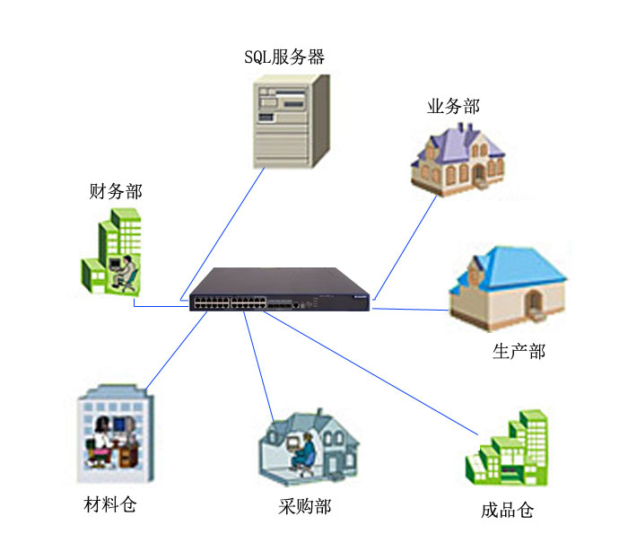 公司內(nèi)部購(gòu)買一臺(tái)路由器/交換機(jī),將各個(gè)部門電腦連接在一起搭建成一個(gè)局域網(wǎng)。搭建局域網(wǎng)方法可參考相關(guān)資料。