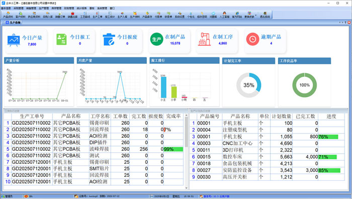 生產(chǎn)管理:生產(chǎn)看板,生產(chǎn)計劃,生產(chǎn)工單,工藝路線,掃碼報工,計件工資等;
