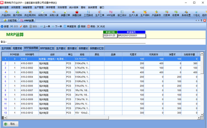 根據(jù)BOM生成物料需求,對(duì)比當(dāng)前的庫(kù)存和在途數(shù)計(jì)算物料需求;