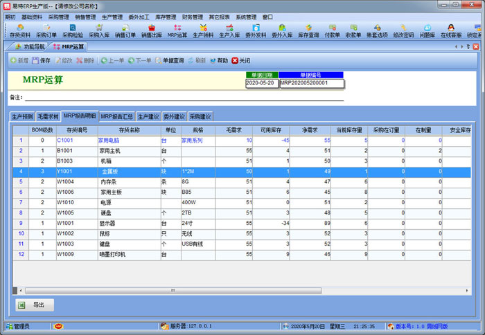 根據(jù)BOM生成物料需求,對比當前的庫存和在途數(shù)計算物料需求;