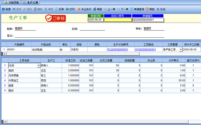 增強(qiáng)版在ERP標(biāo)準(zhǔn)版的基礎(chǔ)上增加工藝路線,生產(chǎn)工單,掃碼報(bào)工,計(jì)件工資等模塊
