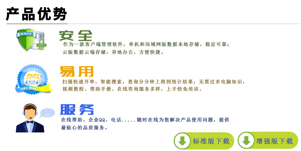 易特銷(xiāo)售管理軟件是一款專(zhuān)業(yè)的銷(xiāo)售型進(jìn)銷(xiāo)存管理軟件,其中包含產(chǎn)品銷(xiāo)售管理系統(tǒng) ,庫(kù)存管理系統(tǒng),財(cái)務(wù)和報(bào)表系統(tǒng)等子模塊。軟件界面設(shè)計(jì)簡(jiǎn)潔,美觀,其人性化的軟件流程,使普通用戶不需培訓(xùn)也能很快掌握軟件操作使用方法,上手極易。強(qiáng)大報(bào)表與集成查詢功能是本軟件的最大特色,所有功能在用戶需要的使用地方自然體現(xiàn),不用打開(kāi)多個(gè)窗口重復(fù)查詢。易特進(jìn)銷(xiāo)存軟件廣泛適用于企業(yè),商貿(mào)公司,個(gè)體門(mén)店等用于商業(yè)銷(xiāo)售管理, 庫(kù)存管理,財(cái)務(wù)管理等,客戶管理,員工管理等場(chǎng)合,是您企業(yè)進(jìn)行信息化管理的強(qiáng)大工具。 基礎(chǔ)數(shù)據(jù):產(chǎn)品信息,供應(yīng)商,客戶,產(chǎn)品分類(lèi),倉(cāng)庫(kù),銀行等基本信息的設(shè)置。 入庫(kù)管理:進(jìn)行產(chǎn)品采購(gòu)入庫(kù),采購(gòu)?fù)素洠少?gòu)入庫(kù)單據(jù)和退貨單據(jù)查詢。 出庫(kù)管理:銷(xiāo)售出貨,客戶退貨,銷(xiāo)售單據(jù)和客戶退貨查詢 庫(kù)存管理:包括庫(kù)存之間貨品調(diào)拔,庫(kù)存報(bào)損、報(bào)溢,庫(kù)存盤(pán)點(diǎn)功能。 財(cái)務(wù)管理:客戶往來(lái)帳務(wù),客戶付款,供應(yīng)商往來(lái)帳務(wù),供應(yīng)商付款,客戶對(duì)賬單,收入,支出記賬等。 統(tǒng)計(jì)報(bào)表:完整的統(tǒng)計(jì)查詢功能,每張單據(jù)每次業(yè)務(wù)金額都可以清楚的反映。 權(quán)限管理:可添加刪除系統(tǒng)操作員帳號(hào),強(qiáng)大的權(quán)限控制,可以設(shè)置某用戶對(duì)某窗口某個(gè)按鈕的權(quán)限。 打印設(shè)計(jì):可對(duì)系統(tǒng)內(nèi)每個(gè)單據(jù)進(jìn)行打印的格式設(shè)計(jì),可以導(dǎo)出,導(dǎo)入,每個(gè)操作員可設(shè)計(jì)自己的打印格式。 界面設(shè)計(jì):系統(tǒng)窗口界面名稱可以自定義設(shè)計(jì),表格的顯示順序,寬度,是否顯示等,每個(gè)操作員可以設(shè)計(jì)自己的界面。 系統(tǒng)設(shè)置:可以靈活設(shè)置系統(tǒng)小數(shù)位數(shù),可選0-6位,讓帳務(wù)更精確,可對(duì)以往數(shù)據(jù)進(jìn)行選擇性的清除,以便系統(tǒng)初始化。 數(shù)據(jù)備份:可隨時(shí)對(duì)系統(tǒng)數(shù)據(jù)庫(kù)進(jìn)行安全備份,以防數(shù)據(jù)丟失。 系統(tǒng)要求:Win2000/WinXp/Win2003/Win7/Win8/Win10? 32位與64位完美支持 |